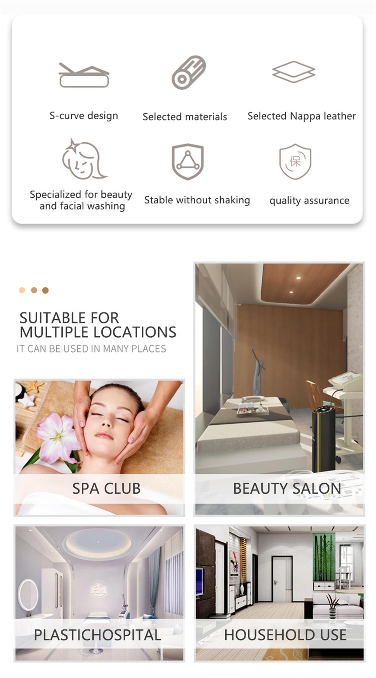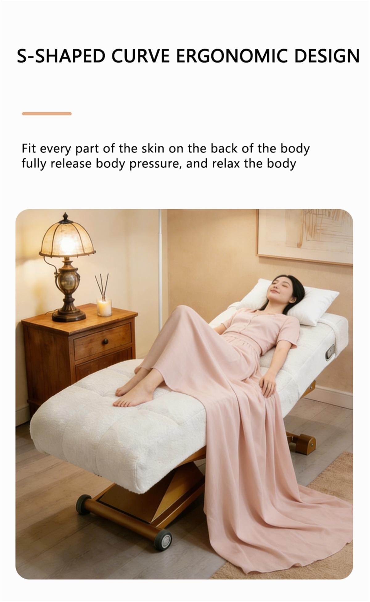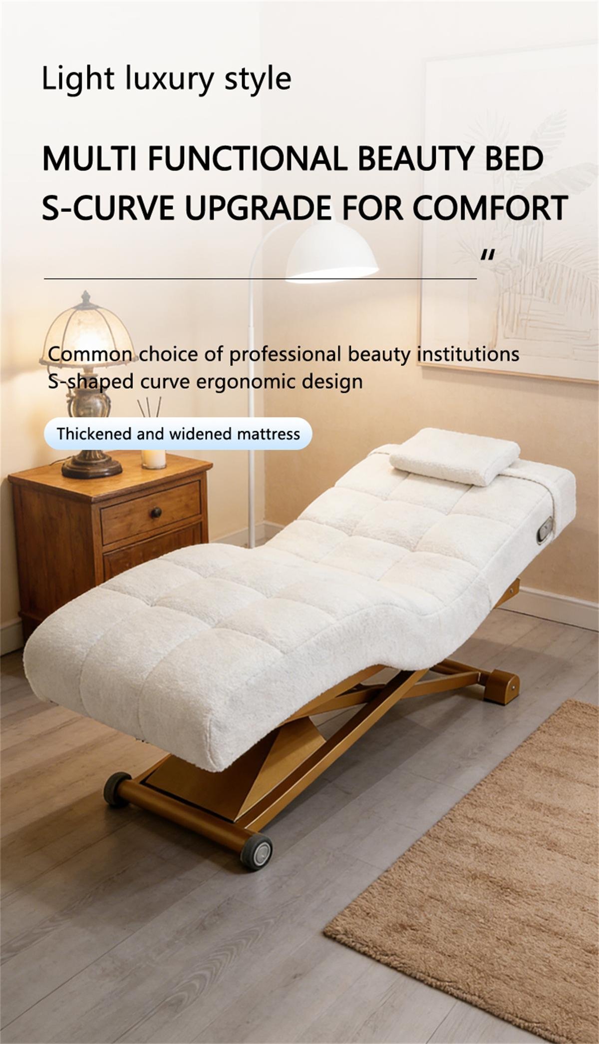 Das elegante und stilvolle S-förmig geschwungene Schönheitsbett ist ideal für den Einsatz in Schönheitssalons, Spas, Hautpflegezentren und ähnlichen Einrichtungen. Es ist im Direktvertrieb erhältlich und wird zu Großhandelspreisen angeboten - auch für Einzelbestellungen.