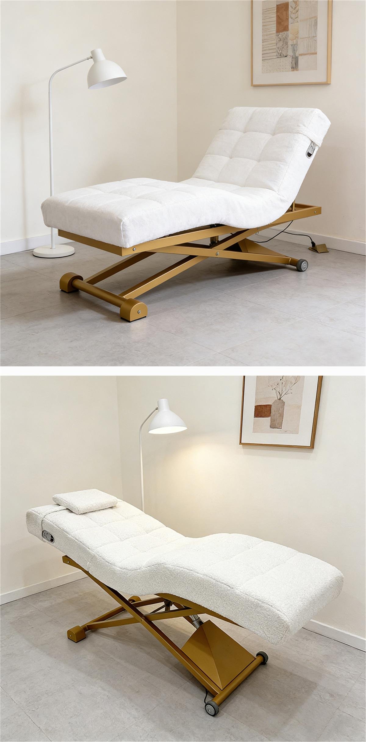 Minimalistisches & praktisches Electric Lift Beauty Bed - Salonmöbel, Wimpernverlängerungsbett und Spa-Behandlungsliege. Ergonomisch geformtes Bett für die Gesichtspflege von Frauen. Werksdirektverkauf; individuelle Farboptionen verfügbar.