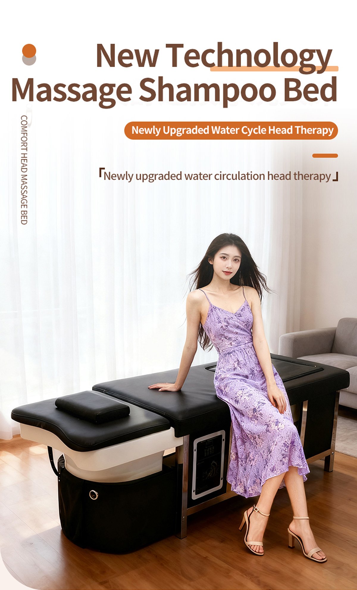 Detachable Thai-Style Shampoo Bed — Salon Hairdressing Furniture with Foot Bath Function | Stainless Steel Structure, Water Circulation & Steaming Capabilities | Spa Center Facial Treatment Bed & Salon Massage Table/Factory Direct Sales — Customization Available