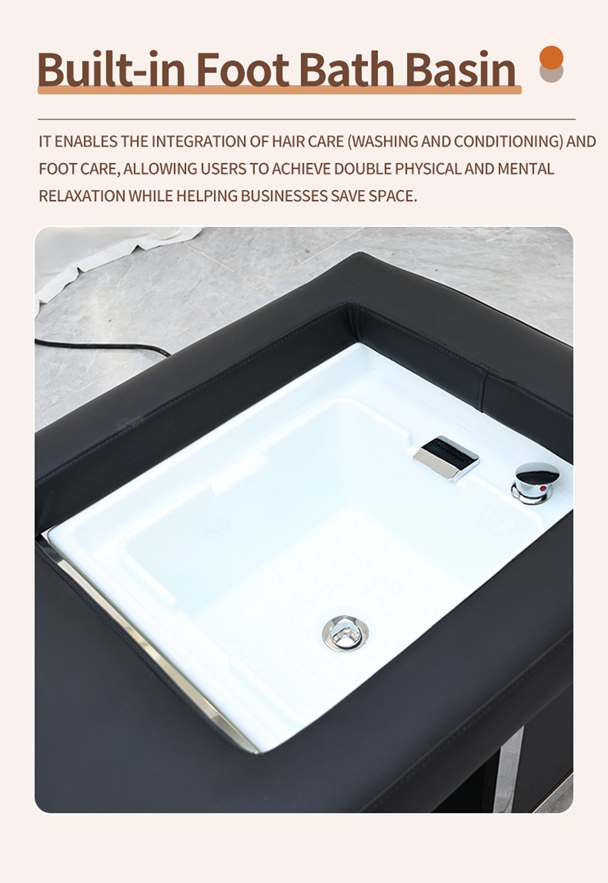 Shampoo beds equipped with foot bath functionality are ideal for use in hair salons, spas, nail studios, foot massage centers, and similar establishments. We offer color customization options and provide both detachable and fixed-style models. As a direct-from-factory supplier, we offer wholesale pricing—even for single-unit orders.