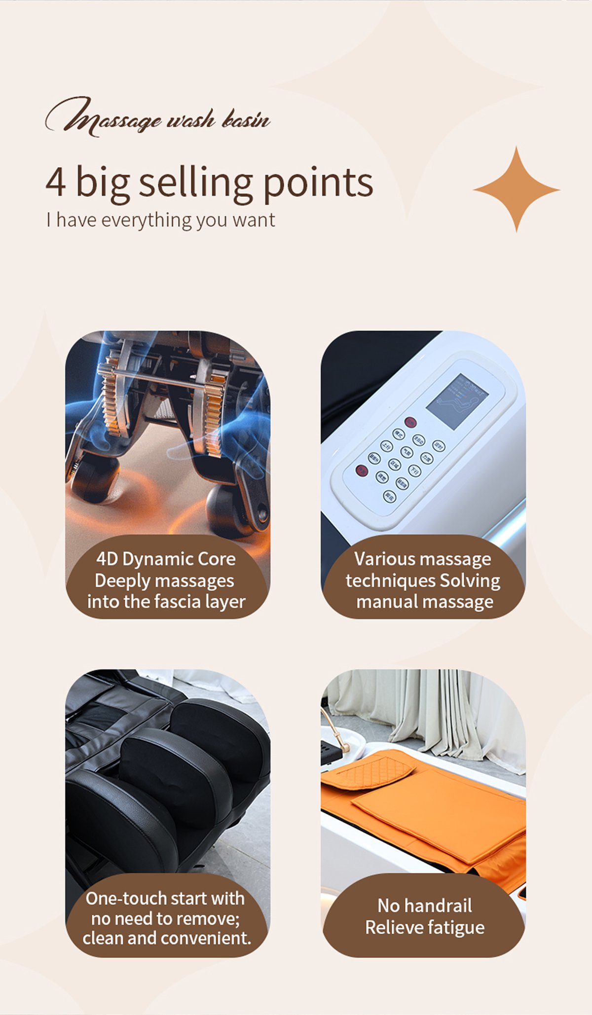The multifunctional electric massage bed(With massage function, water circulation, fumigation function) can be used in salons, hair salons, washing centers, massage centers, spas, etc.