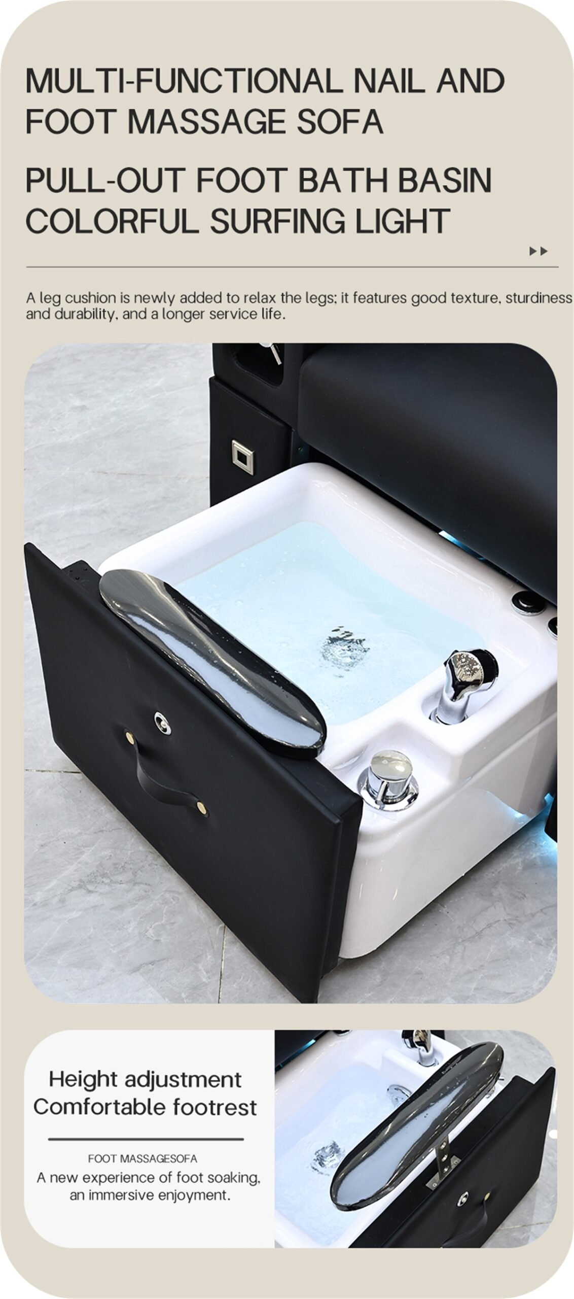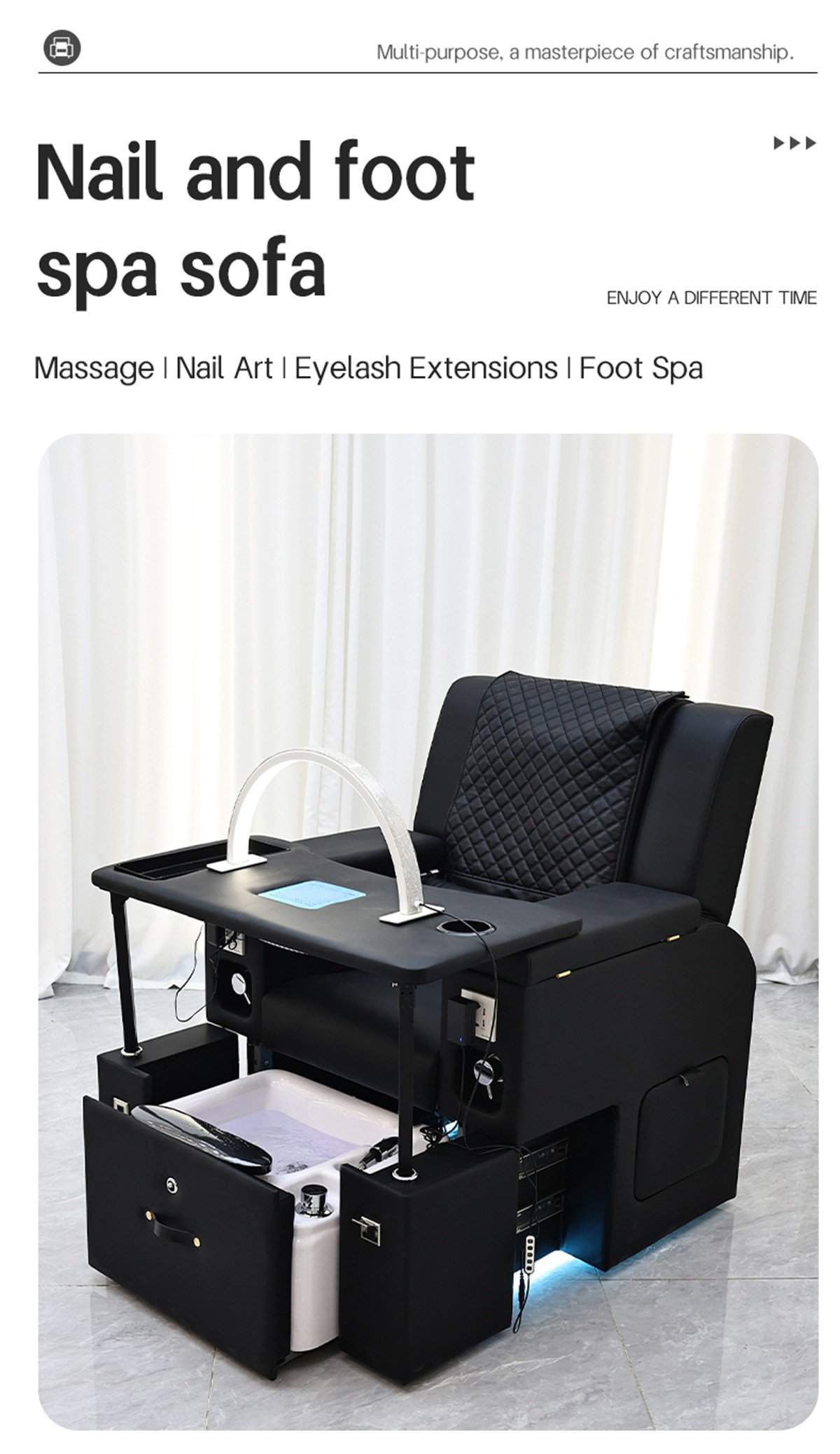Multi-functional manicure, pedicure, and foot spa chair, salon hair styling chair, pedicure chair, salon furniture, spa center manicure chair with massage function, stylish and practical, supports one-button backrest reclining, factory direct sale, customizable colors available.