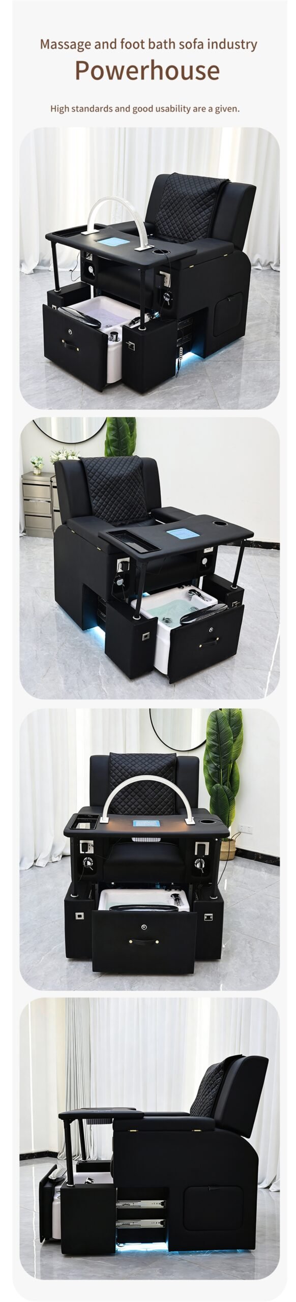 This multi-functional sofa-style pedicure chair is suitable for use in hair salons, beauty and nail salons, spas, and foot massage centers. Custom colors are available, directly from the factory.
