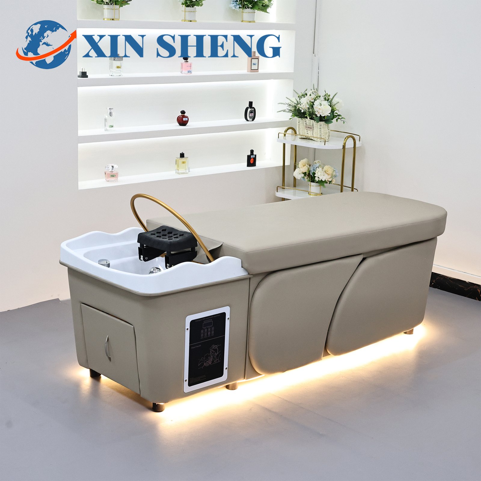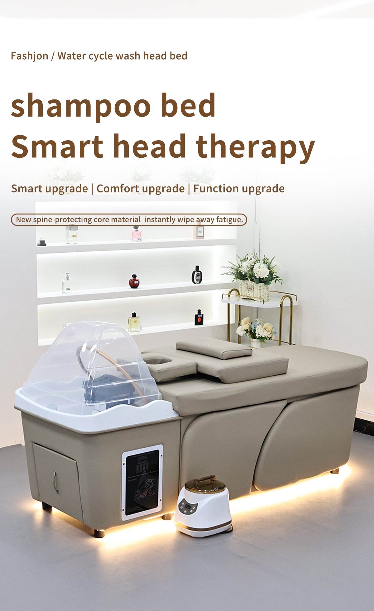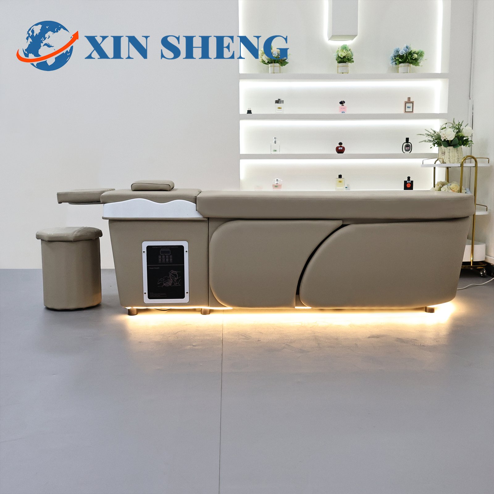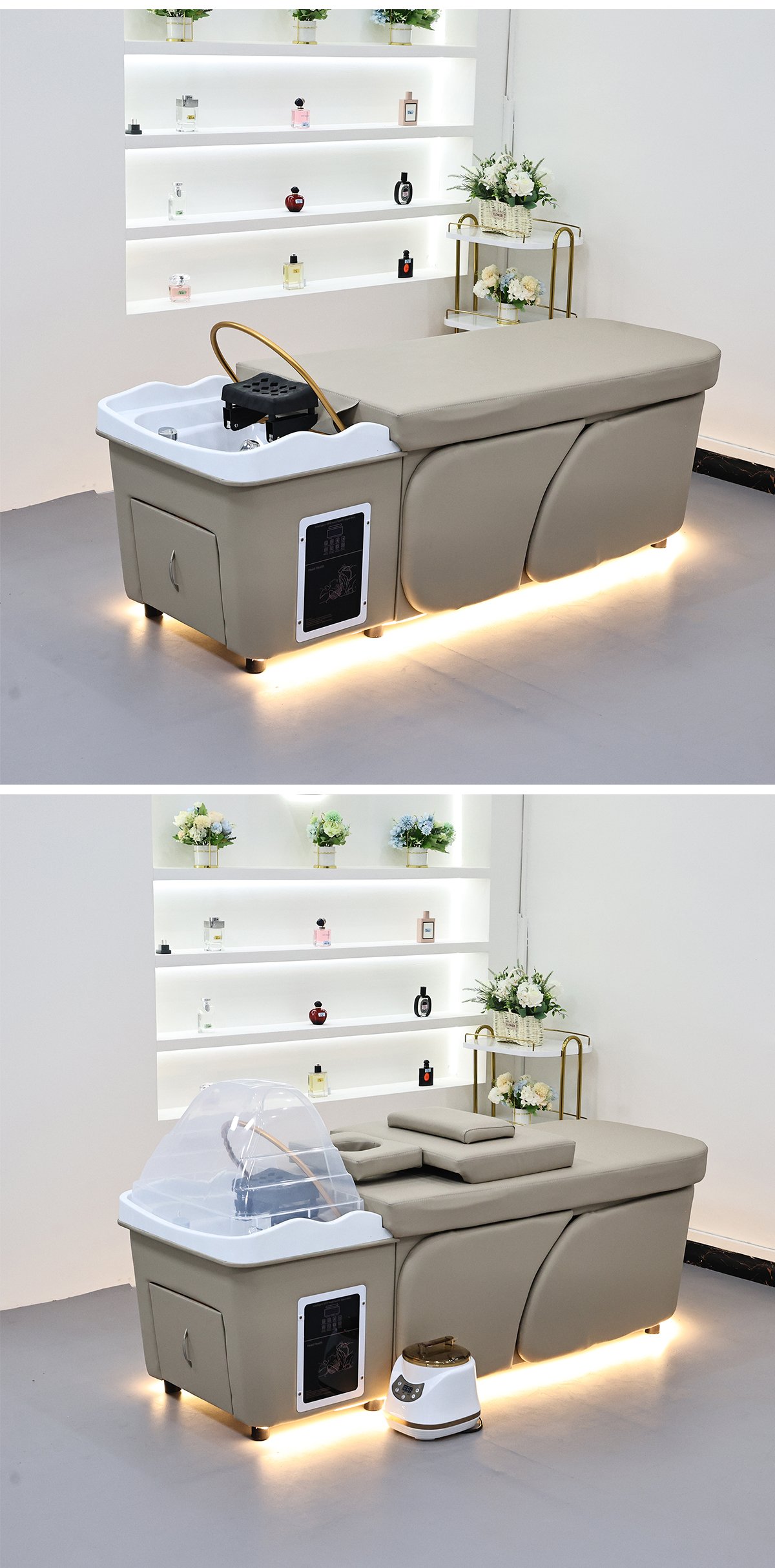 New style Thai-style shampoo bed salon furniture manufacturer, featuring water circulation and steam function, stylish and simple design, affordable massage bed, suitable for beauty salons, nail salons, and spas. Customizable colors available. Factory direct sales.