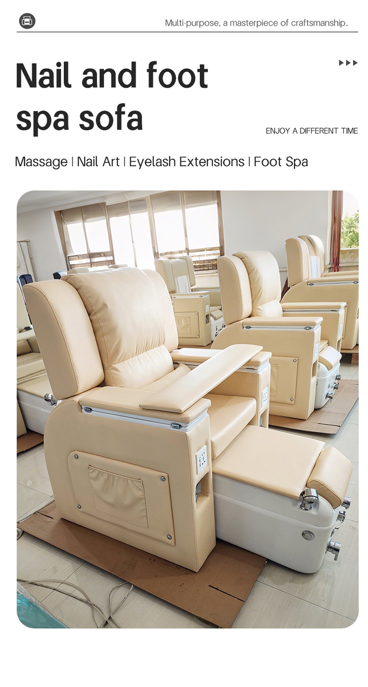 The sofa foot bath pedicure chair can be used in massage centers, spa centers, etc. It supports customized colors and has a one-button reclining function.