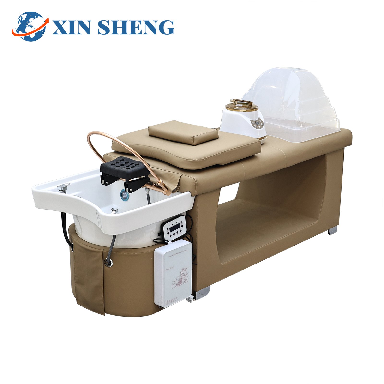Spacious design Thai-style shampoo bed with ceramic basin, salon furniture, beauty and hair salon massage shampoo bed, high quality, affordable and practical, spa and nail care bed. Customizable colors/logo available, direct from the manufacturer.