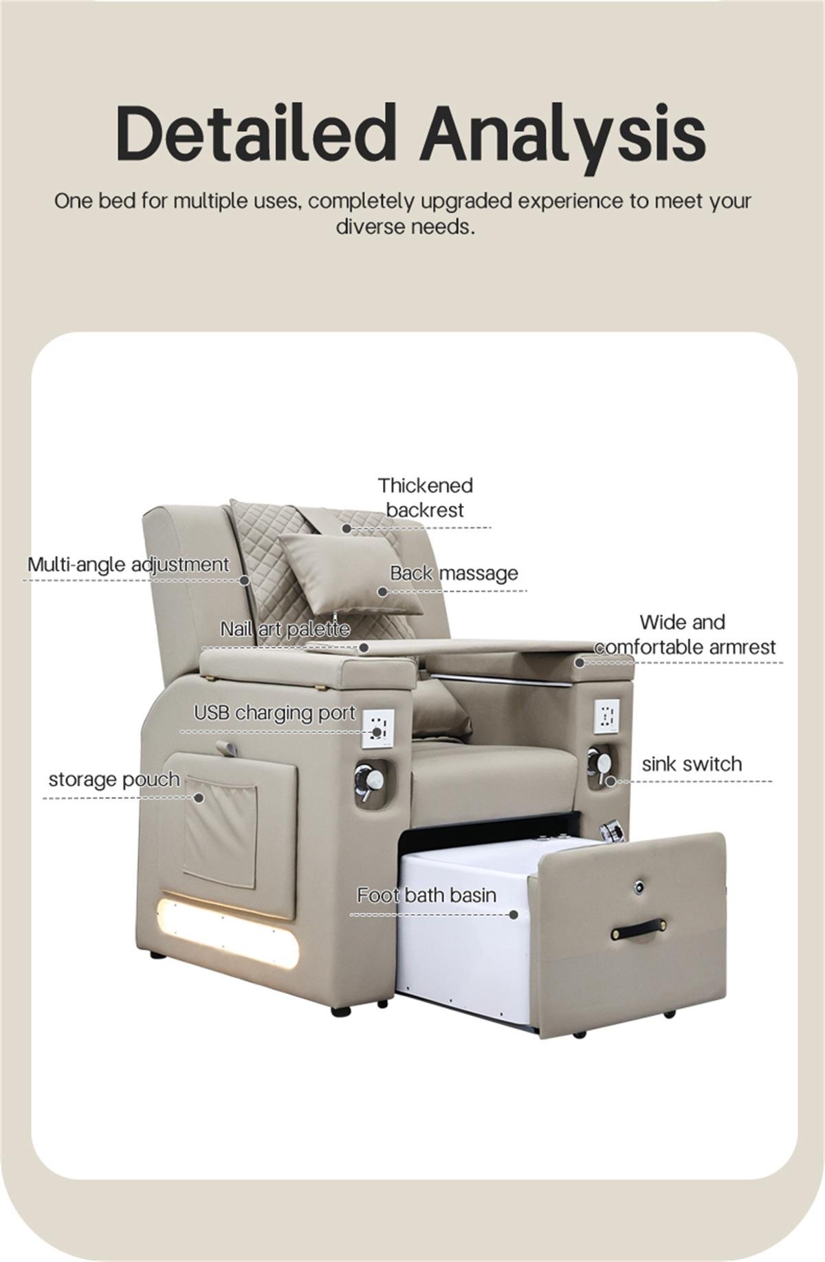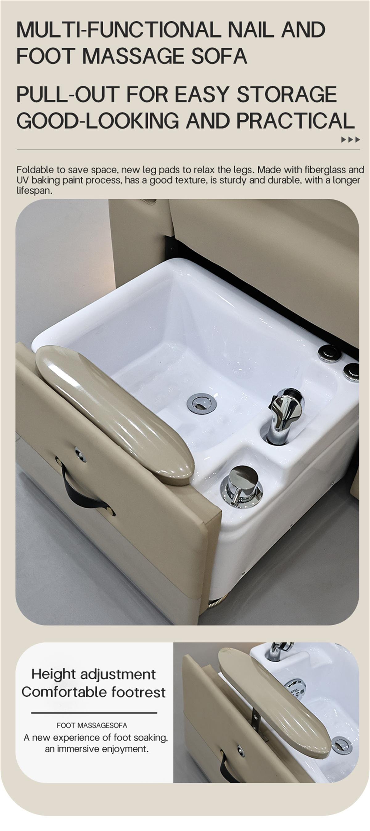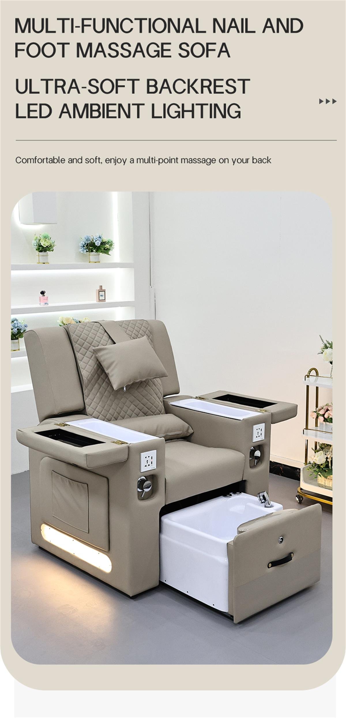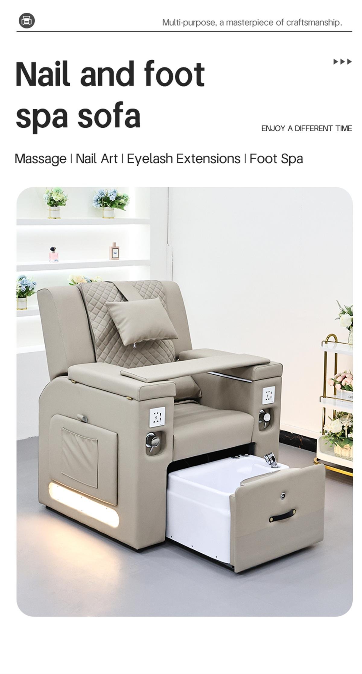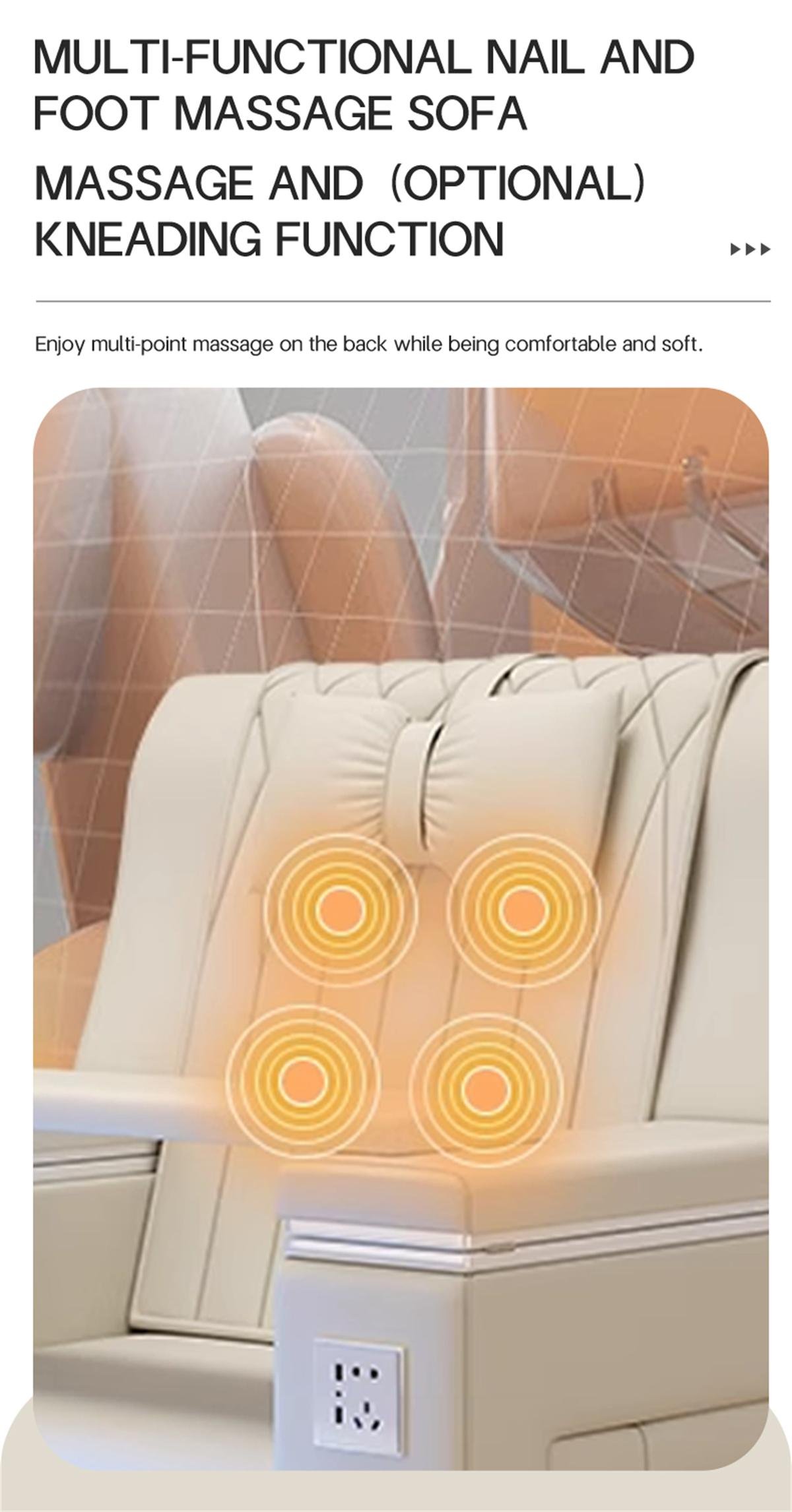 Fabricante de móveis para salão de beleza, atacado de cadeira de pedicure estilo sofá com ajuste do encosto com um botão e função de massagem, cadeira de pedicure para spa de unhas, cores personalizáveis disponíveis.