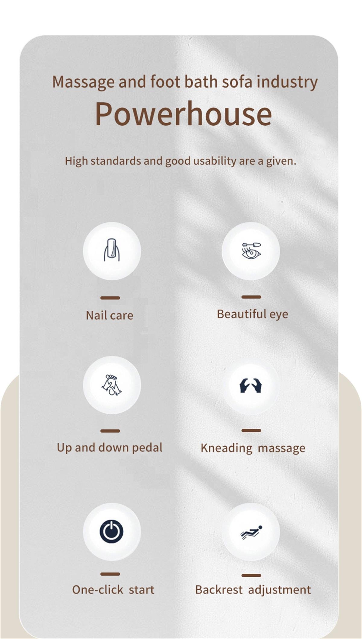 As cadeiras elétricas inteligentes de massagem para pedicure são adequadas para uso em salões de cabeleireiro, centros de massagem, salões de beleza, spas e outros estabelecimentos semelhantes. Vendas diretas da fábrica, cores personalizadas disponíveis, preço de atacado mesmo para itens individuais.