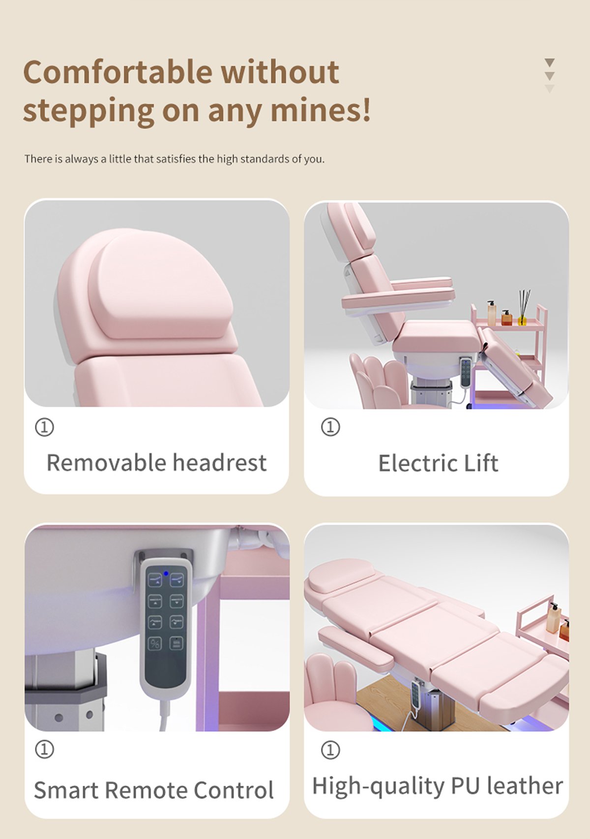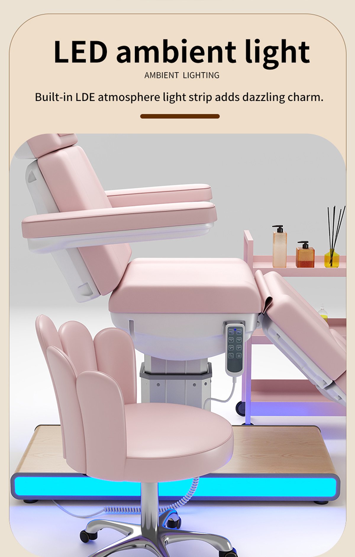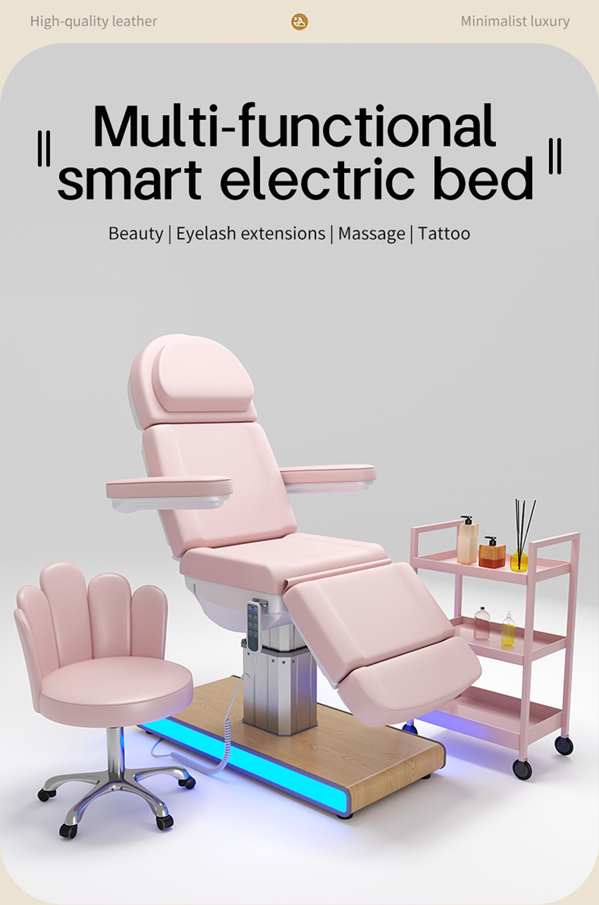 เตียงเสริมสวยอัจฉริยะแบบไฟฟ้าอเนกประสงค์ (พร้อมฟังก์ชันยก ปรับได้อย่างอิสระ) สามารถใช้ได้ในศูนย์เสริมสวย ศูนย์นวด ศูนย์พยาบาล ศูนย์สปาบำบัดศีรษะ ฯลฯ