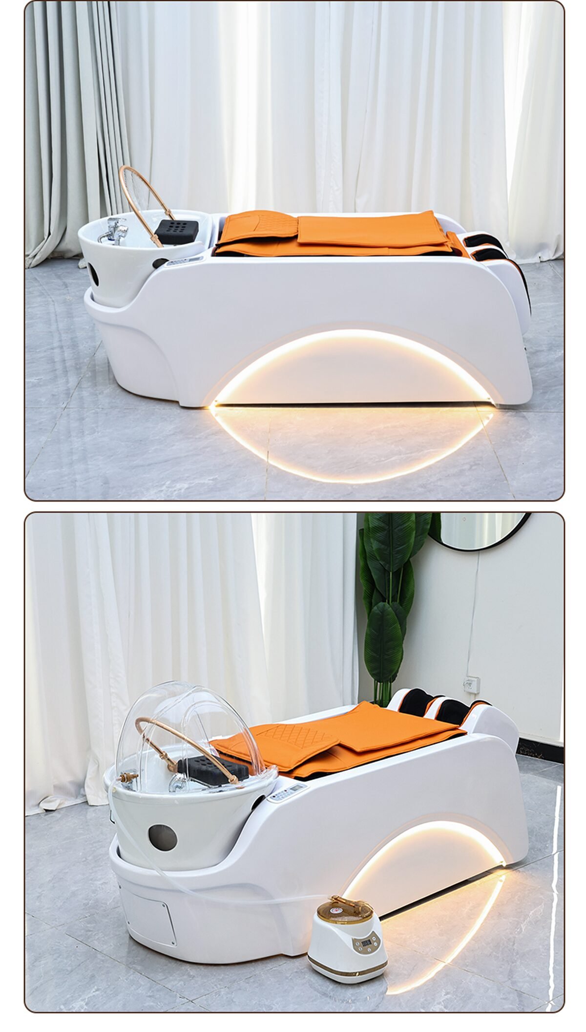 多功能电动按摩床(具有按摩功能、水循环功能、熏蒸功能)可用于美容院、美发店、洗涤中心、按摩中心、水疗中心等。